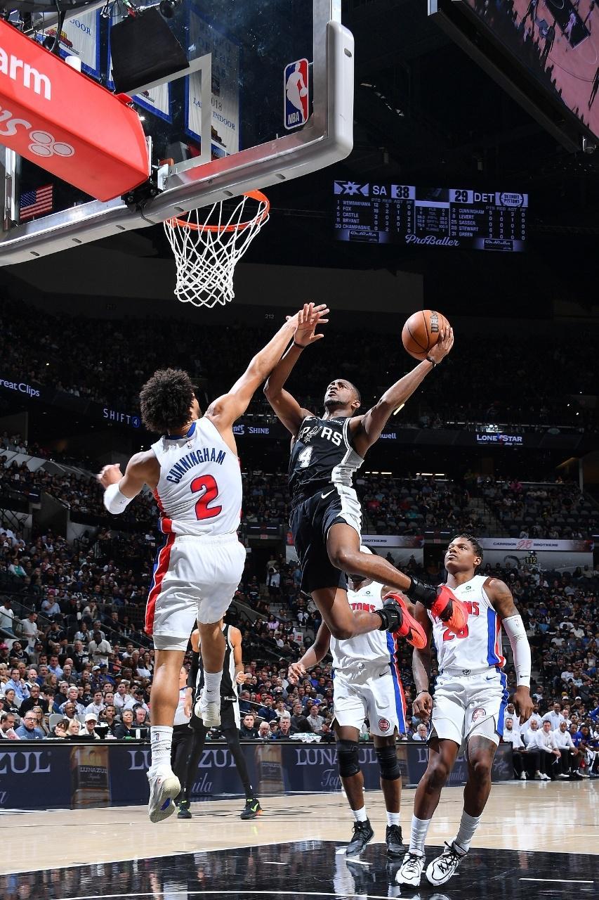 次节比赛,马刺连续两节单节得分30+,活塞也是进攻回暖轰下30+展开对攻。马刺继续在双核引领下内外开花得分,马刺逐步扩大52-35领先优势,活塞连追4分。双方持续展开拉锯战,马刺被追到62-52领先,马刺一波9-0攻势扩大优势,活塞略有反扑追分,马刺单节33-32净胜1分,上半场结束马刺71-53领先活塞。前两节比赛,活塞三分14中5,坎宁安16中5得到11分5助攻与斯图尔特12分;马刺三分20中8,文班亚马13中7得到24+7与福克斯13中9得到22分。